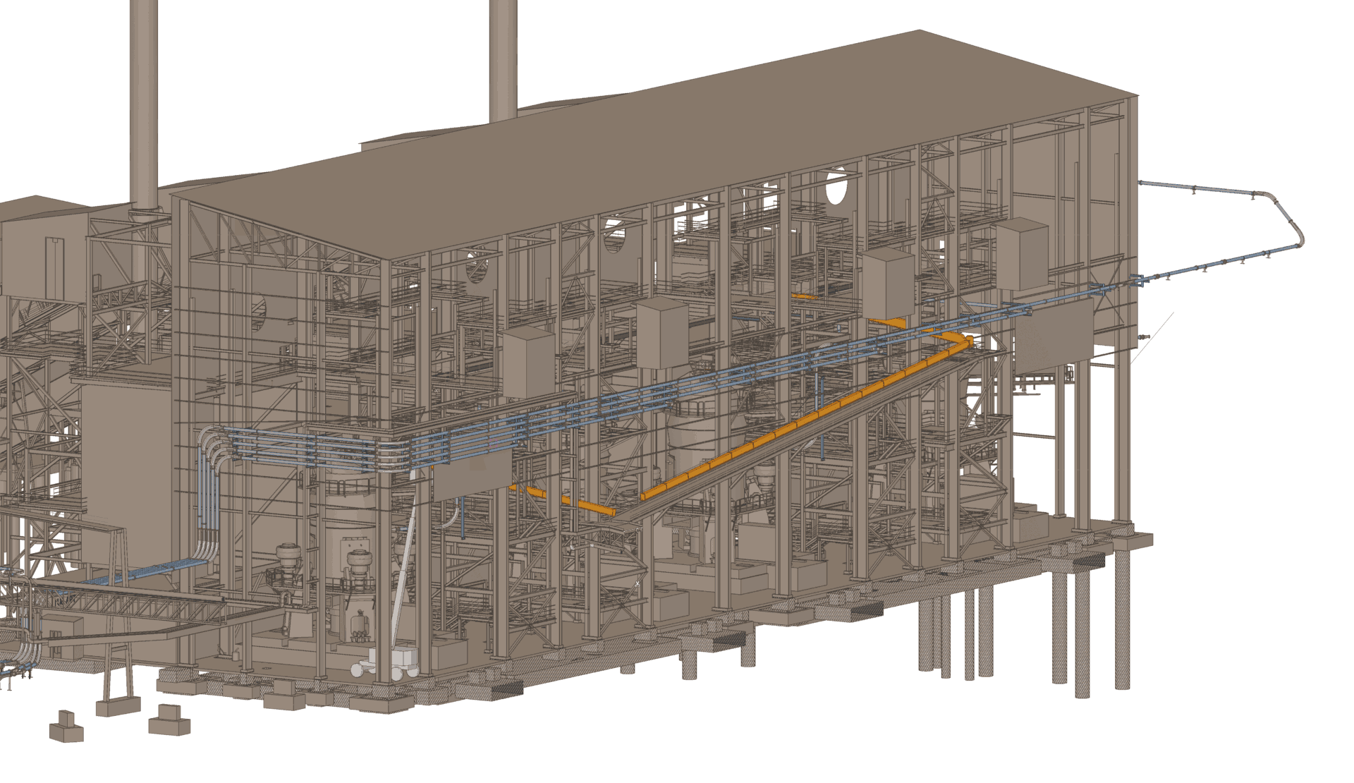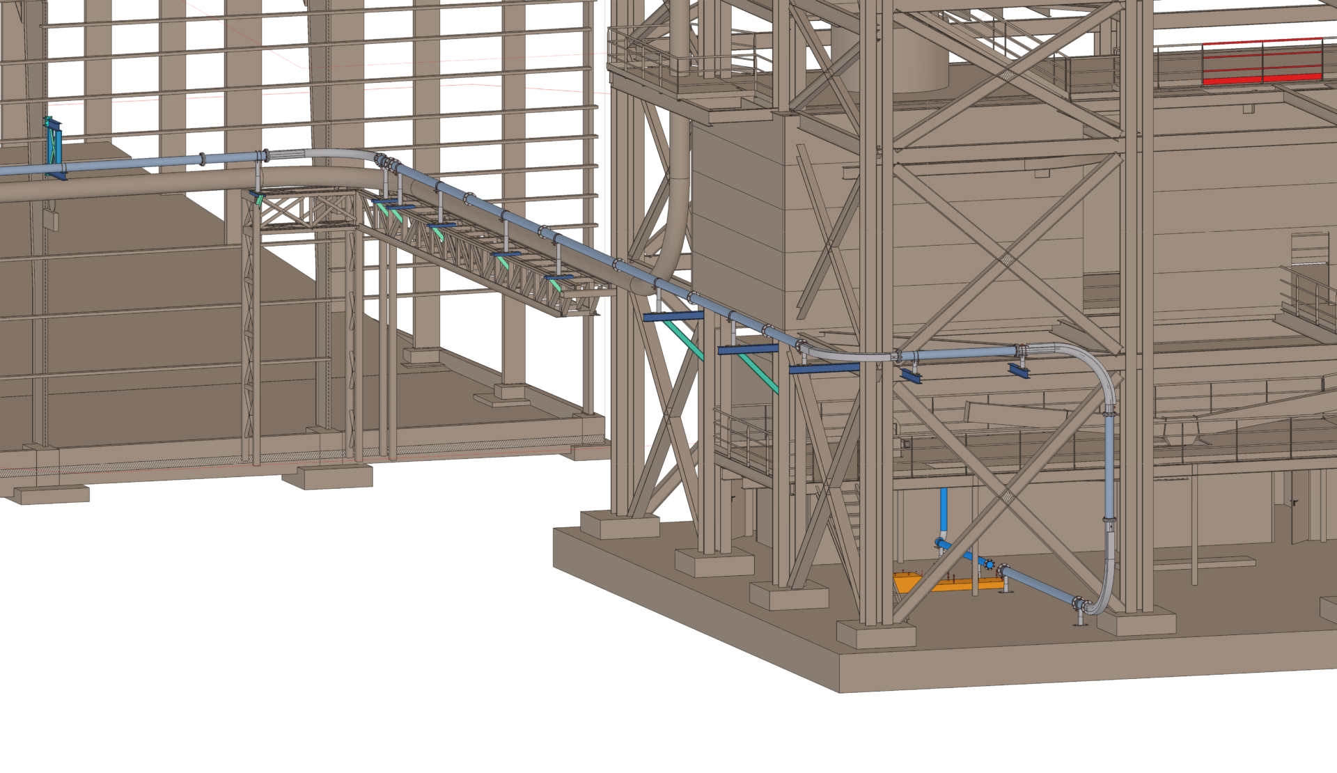 Our client is planning the construction of a new pneumatic transport for AMRIZE in Ste. Geneviève, Missouri (USA). The new pnematic transport system consists of a network of pipes supported by various structures and other existing buildings.